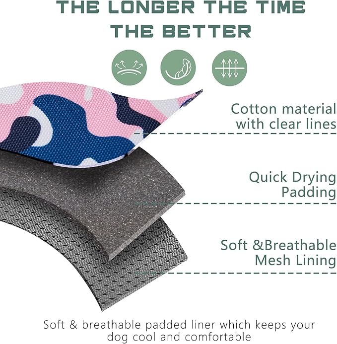 - 🐾DUARABLE & BREATHABLE MATERIAL: All Day Comfort.🐾 The heavy-duty vest made of soft cotton fabric with clear texture for the beautiful appearence. Extra durability and wear-ability, suitable for all field use. The soft padding can protect your dog's skin, while the breathable air mesh keeps your dog ventilated and comfortable. We will protect the comfort and health of the dog together with you.
