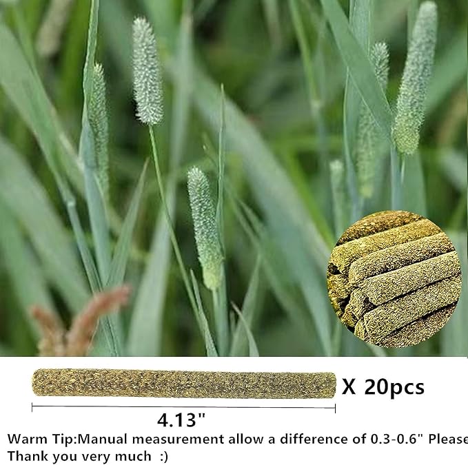 Rabbit Toys,Timothy Hay Stick for Guinea Pig Toy Bunny Chew Toys for Teeth Grinding Hamster Alfalfa Bite Treat Rabbit Molar Food Snack for Pet Rat Chinchilla Squirrel Gerbil-20PCS