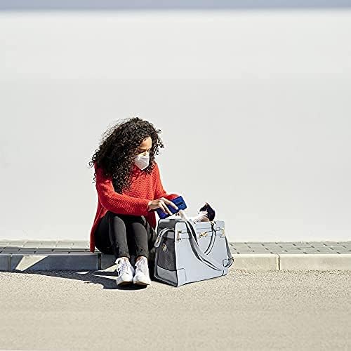 Fashion Pet Carrier Dog Cat Carrier Purse Soft-Sided Leather Handbag Pet Tote Bag for Small Dogs Puppy and Cats TSA Airline Approved (Grey)