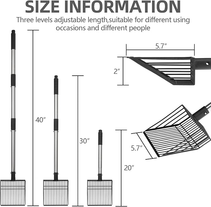- [3 Levels Length Adjustable]: The handle length can be adjusted from 19.9 inches to 39.8 inches. It can be assembled and disassembled with the press of a button, and the holding handle works very well. Three kinds of lengths can be adjusted to meet the needs of people of different heights. From then on, you don’t need to bend down to serve your cat