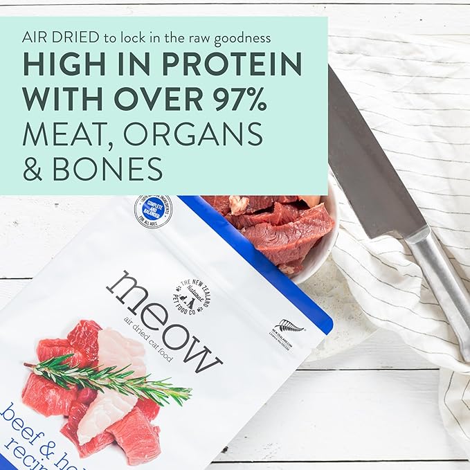 Meow Air Dried Cat Food - Beef & Hoki Recipe,High Protein Dry Cat Food, Training Treats, Meals & Toppers,3.5oz