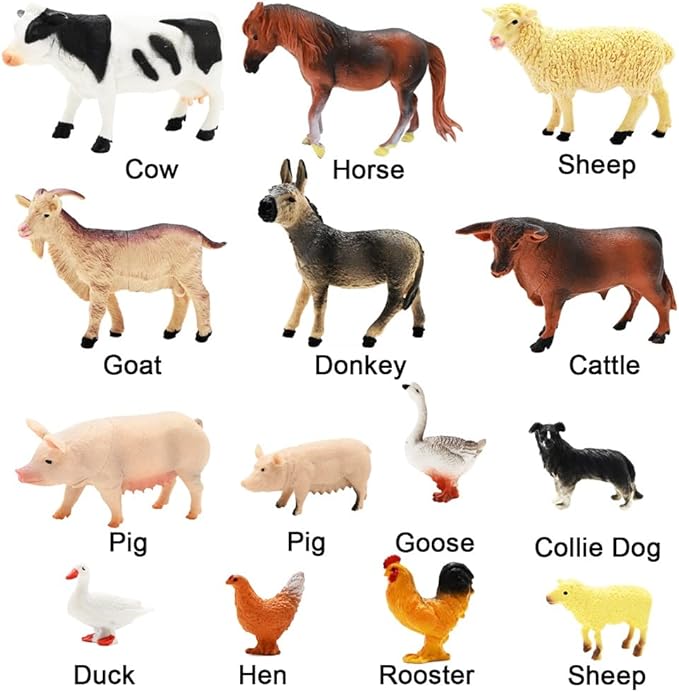 - 💗 SAFE & REALISTIC FARM FIGURES: 15 Pcs unique farm figurines with vibrant colors, 8pcs 4-5 inch big farm figures and 7pcs 2-2.5 inch mini farm figures, which are made of high quality durable ABS materials which is Eco-Friendly, plus hand-painted make them more realistic. KIMICARE's #1 priority is child safety.