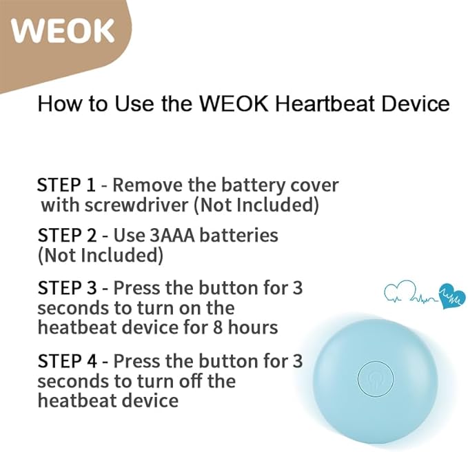 - Our Service: we hope to provides the best company and comfort to puppies, cats. If you have any question, please do not hesitate to contact us. We will feedback to you ASAP. Important tips for heartbeat device οΌ Press and hold the switch long enoughοΌit works; Press and hold the switch long enoughοΌit stops.