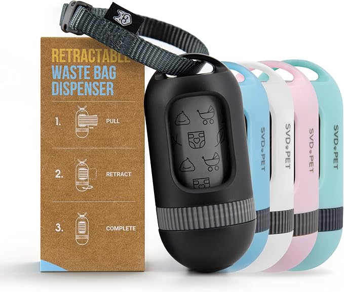 SVD.PET Dog Poop Bag Dispenser, Retractable Waste Bag Fits Any Dog Leash, Leak-Proof Waste Bags, Poop Bag Holder, Doggy Walking Accessory (Black)