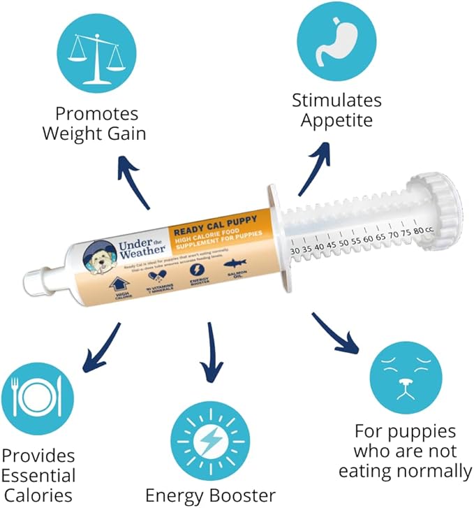 Under the Weather Pet | Ready Cal for Puppies 80cc | High Calorie Puppy Nutritional Supplement | Puppy Weight Gainer and High Calorie Booster | 10 Vitamins, 7 Minerals & Omega Fatty Acids