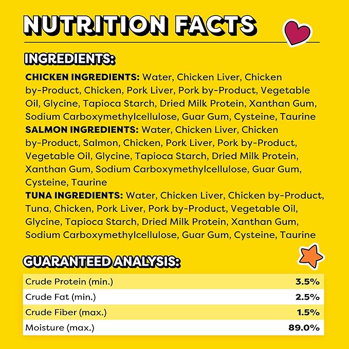 - Fewer Than 15 Calories Per Pouch: Feel good about treating your cat because each of these cat puree tube treats contain fewer than 15 calories