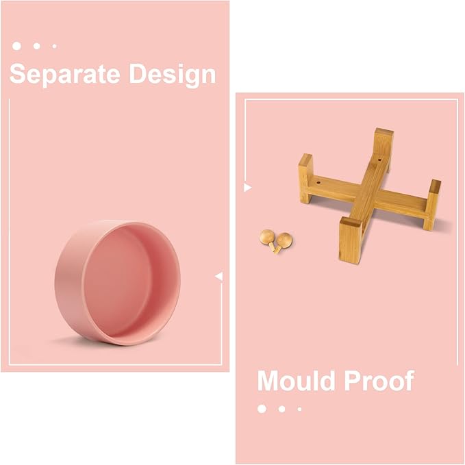 - CERAMIC MATERIAL: SPUNKYJUNKY Tilted Dog Bowl Set uses high temperature fired safe ceramics with a heightened wooden stand to provide a healthy feeding environment for your pet