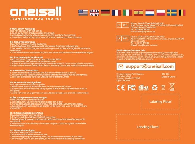 - What You Get: oneisall 7268 cat clipper, 4 guide guards (3mm/ 6mm/ 9mm/ 12mm), cleaning brush, comb, scissor, usb charger. Includes everything you need to trim your petβs hair