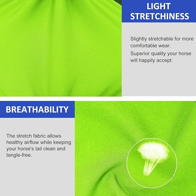 Harrison Howard Stretchy Tail Bag Breathable Horse Tail Guard Slip on Design Protect Horse Tail 2 Strand Closure Straps Keep Tail Clean & Protected 22" L Length Makes Grooming Easy-Fluro Lime