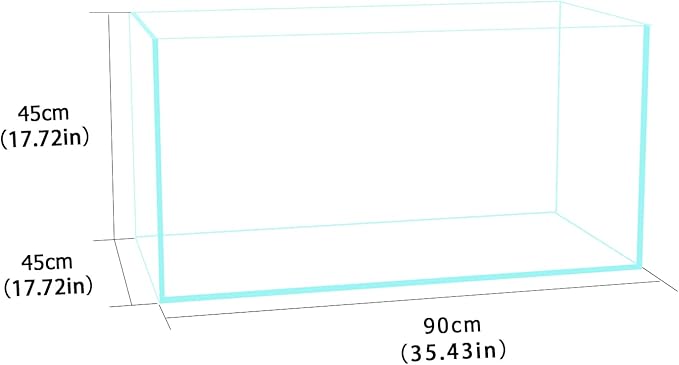 - Model:S90-W45, 44Gal 35.4W×17.7D×17.7H in(90x45x45cm). 10mm glass thickness.