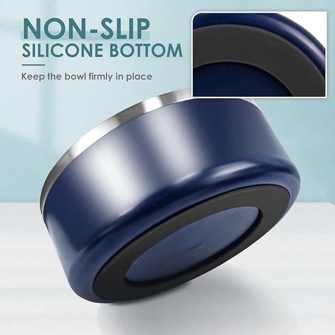IKITCHEN Dog Bowl for Food and Water, 40 Oz Stainless Steel Pet Feeding Bowl, Durable Non-Skid Double Wall Insulated Heavy Duty with Rubber Bottom for Medium Large Sized Dogs (40 Ounces/5 Cup, Blue)
