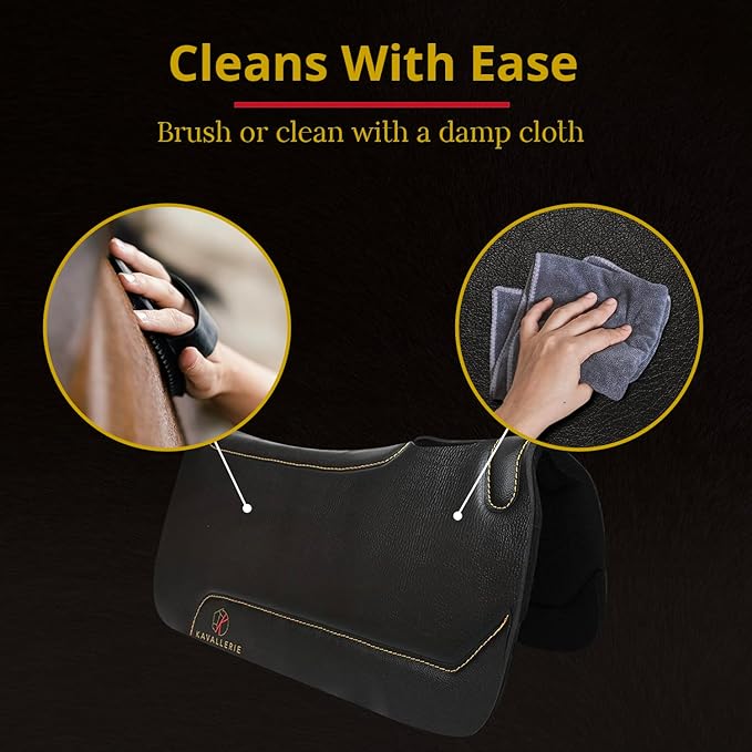 - Dirt Brushes Right Off - The cowhide used for this western saddle pad is designed for easy upkeep. Just brush or clean with a damp cloth and your saddle pad will shine and look brand new for your next ride!