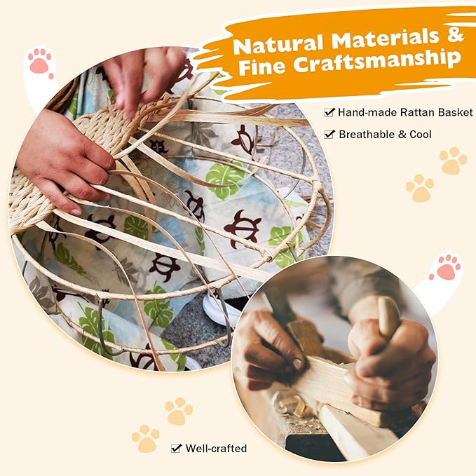 - Selected New Materials & Hand Crafting: The cat scratching post is wrapped with 100% natural sisal ropes. Thick wide base is made by premium engineered wood, strong and stable. Above all, the basket bed and the cat condo are handcrafted from natural water hyacinth straws, and skin-friendly flannel fabric cover provides feline-friendly softness and warmth.