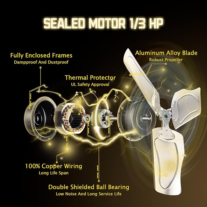 - 【Moves Much Air】: Built with 1/3HP Premium TEAO Enclosed Motor and Shielded Ball Bearings, this heavy duty industrial wall fan provides circulating breeze for large spaces, blowing distance reach 60 feet. It is ideal for Warehouse, Workshop, Factory, Garage, Basement, Greenhouse, Barn, Industrial, Commercial and Residential areas. High speed 9100 CFM / Low speed 7300 CFM