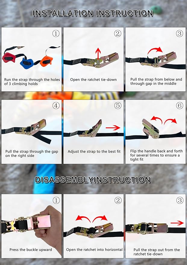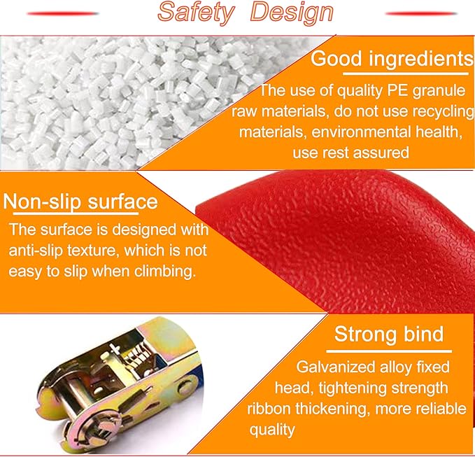 - 【Used for Tree without No Low Branches】16pc colorful climbing rocks holds, 6 x 6 Ft ratchet tie down straps, make it possible for using without other accessories, tools, or putting nails in the tree, the holds can be snug to the tree safely. Please do not weight more than 230 pounds.