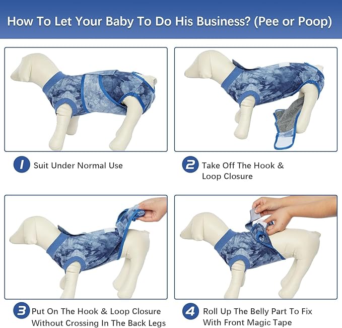 - Convenient and Protective Design: The dog bodysuit can be easily rolled up for potty time without removal and has a 100% cotton pad to protect your dog's sensitive areas. In addition, it helps protect your furniture from shedding during shedding seasons
