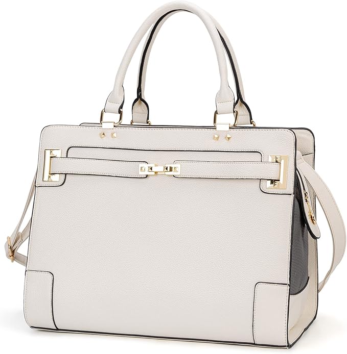 Fashion Pet Carrier Dog Cat Carrier Purse Soft-Sided Leather Handbag Pet Tote Bag for Small Dogs Puppy and Cats TSA Airline Approved (Beige)