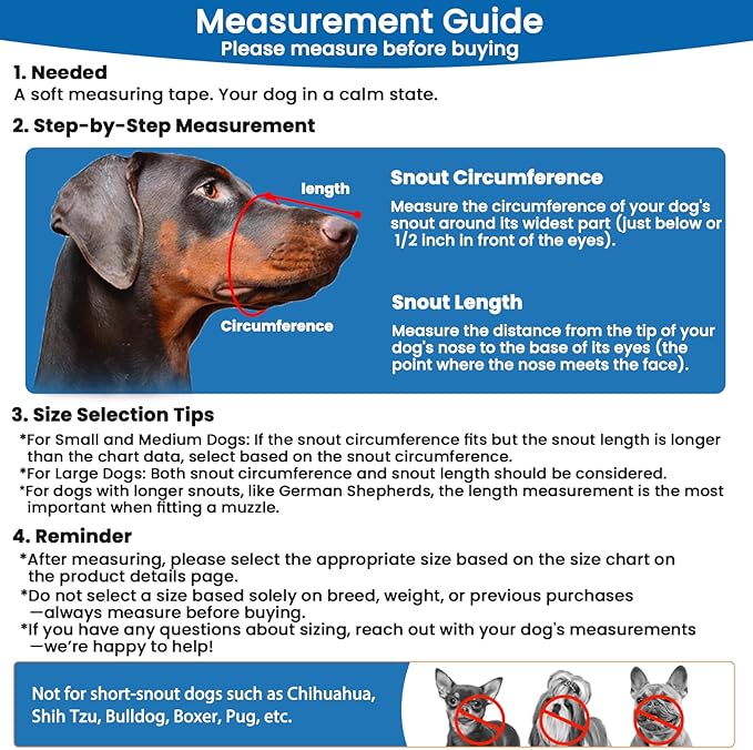 - Training Before Use: To ensure your dog accepts the basket muzzle, proper fitting and desensitization training are essential. Improper use or size can lead to resistance and attempts to remove or bite the muzzle. Please follow the instructions and watch the video on the details page to train your dog before regular use