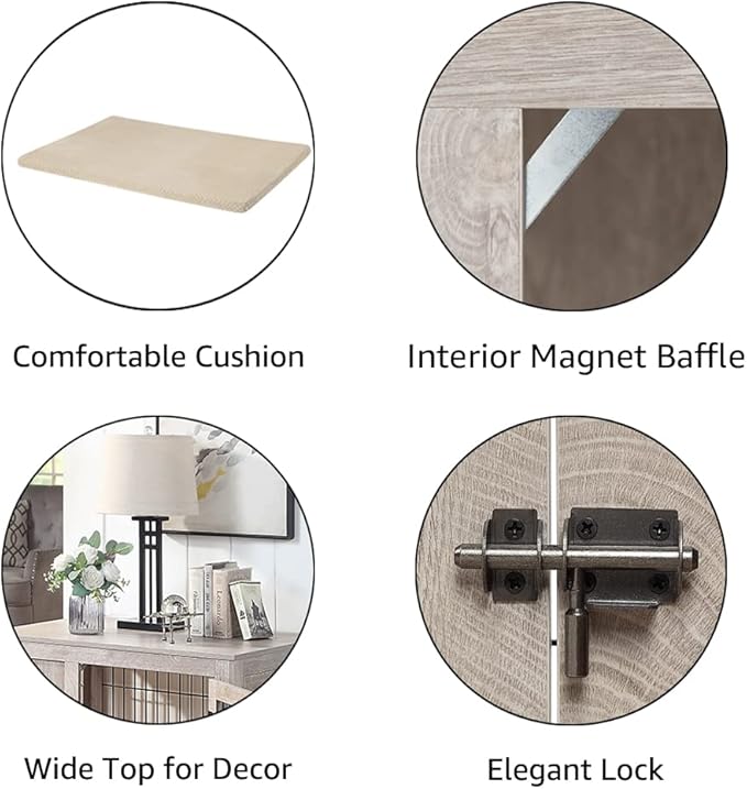 - ELEGANT & DUAL-PURPOSE: This is a nice piece of furniture that also serves as a dog crate. Appear as an elegant side table, end table, and nightstand. A great way to multi-use and show your decorative side to make your home stand out! Your choice of home creativity! The maximum support weight of the top is 200 lbs.