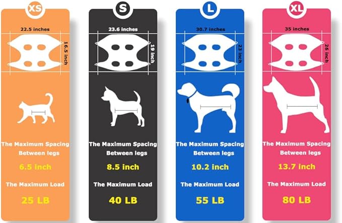 - 【Size Tip】Size XS is suitable for pets with about 6.5 inches between the front and rear legs,In order to make your pet fit perfectly with the grooming hammock, please measure the distance between your pet's legs before purchasing, and the maximum load weight is 25 lbs.If you buy the wrong size or have any other questions, our custom service will try to get it right until you are satisfied.