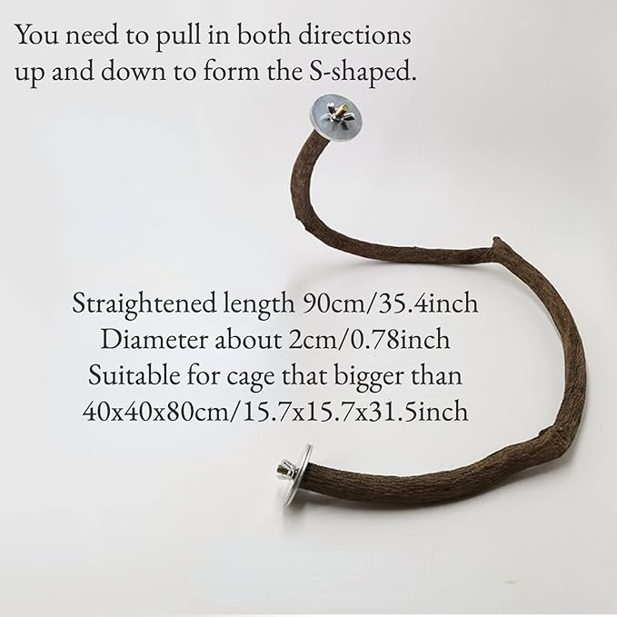 - Size: S-shaped: straightened length approximately 35.4 inch, diameter approximately 0.78 inch. U-shaped: straightened length approximately 19.6 inch, diameter approximately 0.78 inch. Suitable for chewing and gnawing, providing a relaxing and fun environment for birds