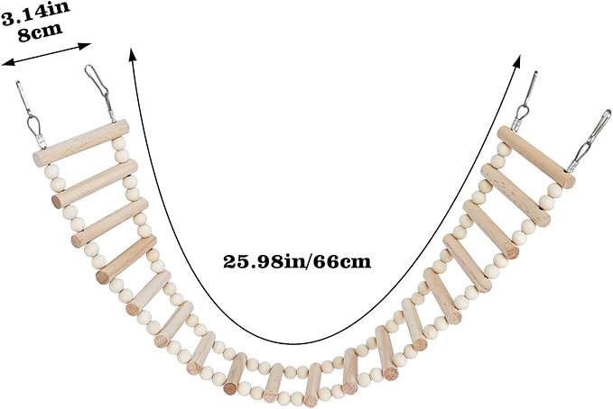 - Climbing Toys for Small animals: The hanging ladder bridge allows the bird and hamsters or other animals to play and jump on the stairs, exercise their balance ability, and enrich their activities and content. This ladder bridge climbing toy is widely suitable for all kinds of birds, hamsters, mice, gliders, ferrets, guinea pigs, lemmings, gerbils and other small animals habitat decoration and play.