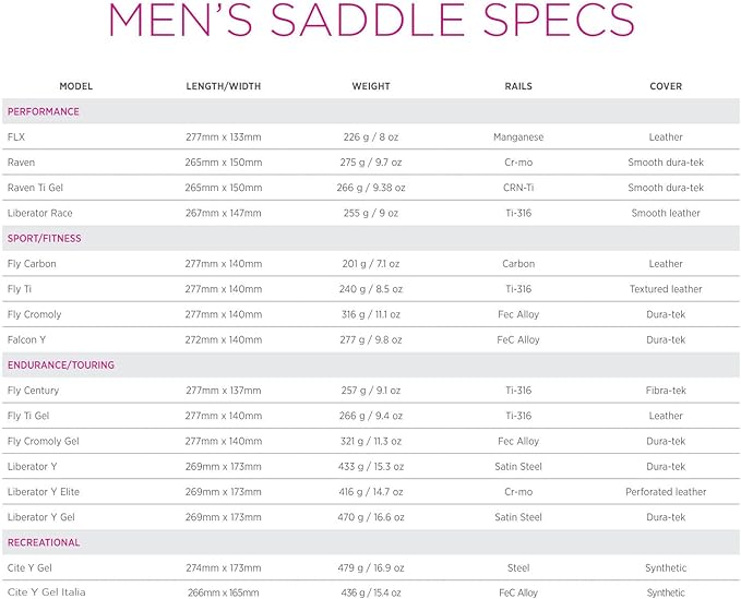 - COVER/FEATURES: vegan friendly perforated black Dura-tek cover with black stitching; center cutaway with rear relief channel for reduced contact with soft tissue areas; FeC Alloy Rails