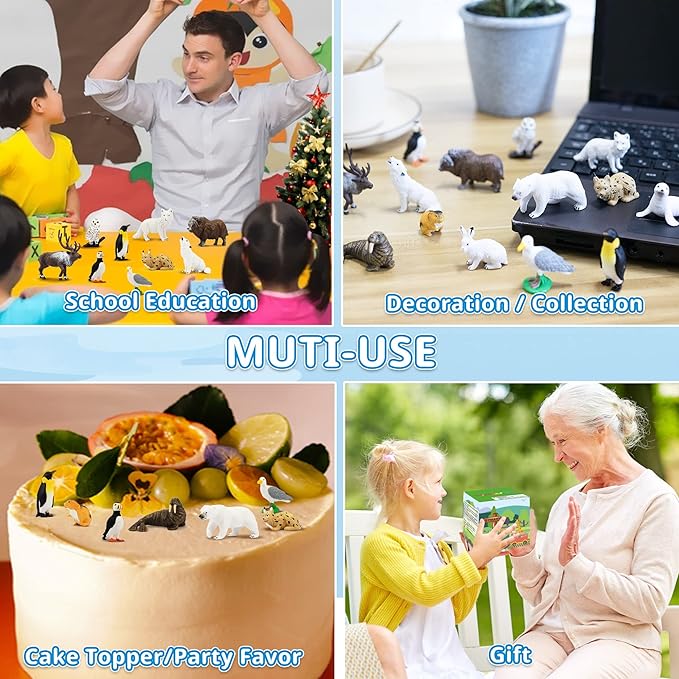 - AWESOME BIRTHDAY PRESENT: Such cute different varieties of polar animal figures toys are worth to be collected, decorating children's bookcase, desk and room. It's an awesome christmas, party, birthday gifts or prize for kids, also it would be a good idea to use them as the animal cupcake toppers and make a polar animal-themed cake for your children.