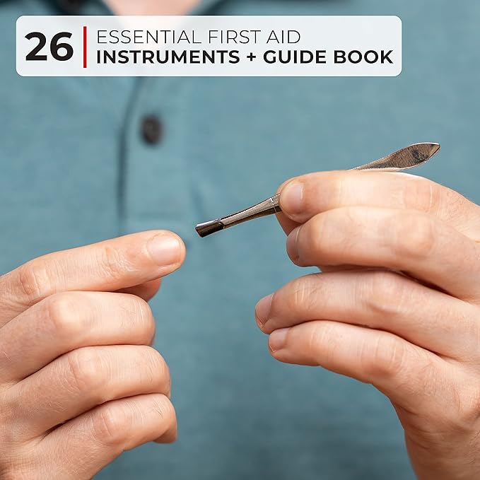 - Complete Kit: Safety essentials stay put in a durable rip-stop nylon and vinyl fabric case. Extensive inner pockets keep contents stored neatly between uses, making it a professional first aid kit and a portable first aid kit for any situation.