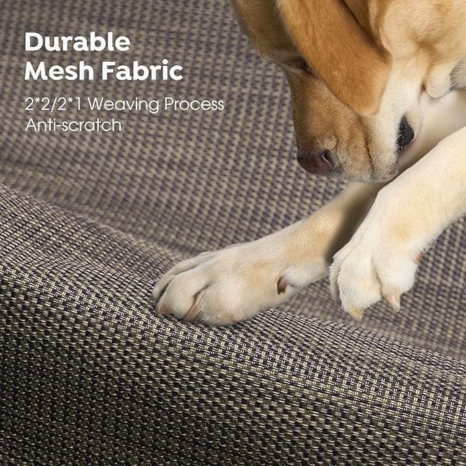 - Stay Cool Ever! Crafted of Textilene mesh fabric, the cooling dog cot allows air to flow, keeping your pets cool while they relax in the heat. Also allow water or urine to go thru, no puddles formed. Besides, the teslin mesh features heat-resistance, sturdy, and breathability.