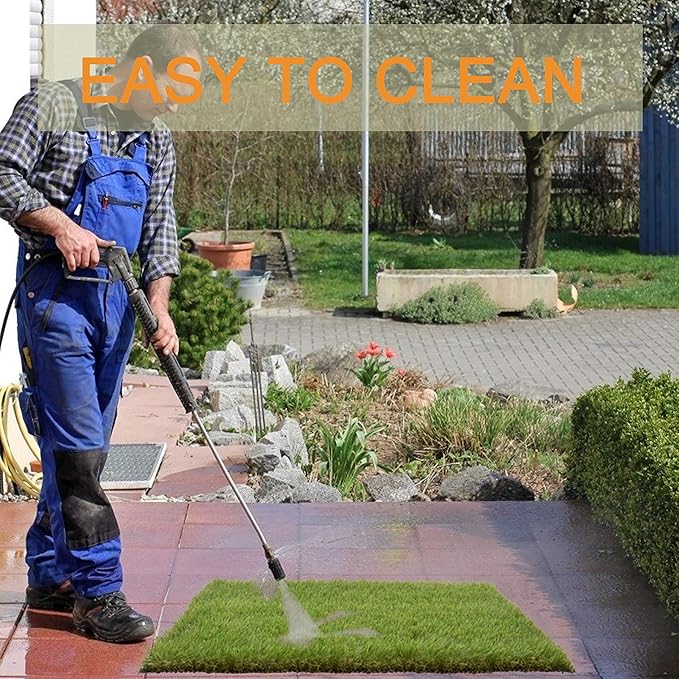 - HIGHLY PERMEABILITY - The pet artificial grass boasts drainage holes that This allows liquid to flow straight through and ensure super easy cleaning and drying. You don't have to worry about dealing with a muddy mess outside or inside your home.