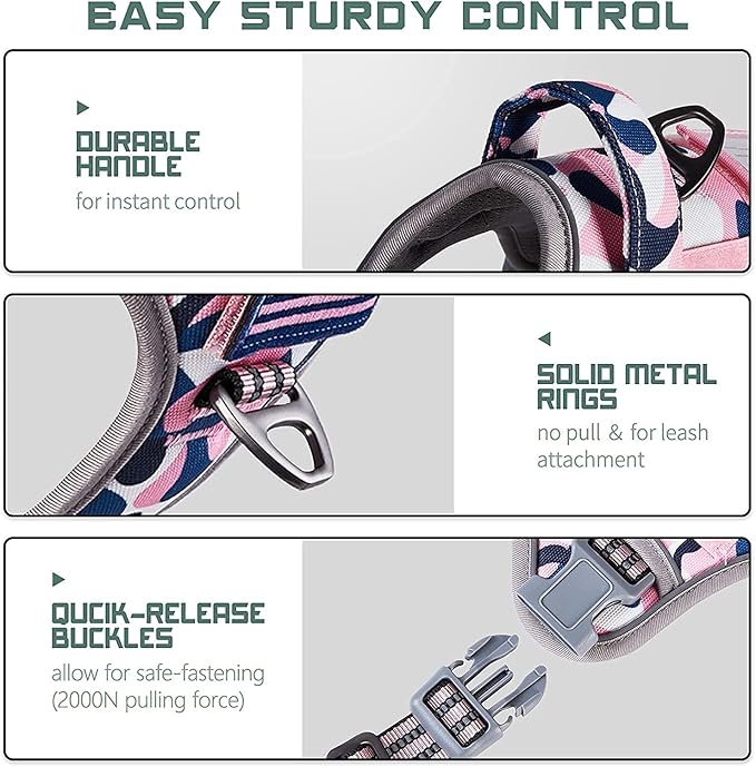 BUMBIN Tactical Dog Harness for Small Dogs, No Pull, Pink Camo XS