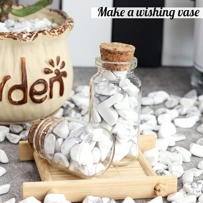 1lb Howlite Aquarium Gravel Rocks Natural Tumbled Healing Crystal Chips Bulk Gemstones Crushed Stones for Fountain Vase Filler Planters Decorative Fish Tank Potted Reiki Energy Balancing