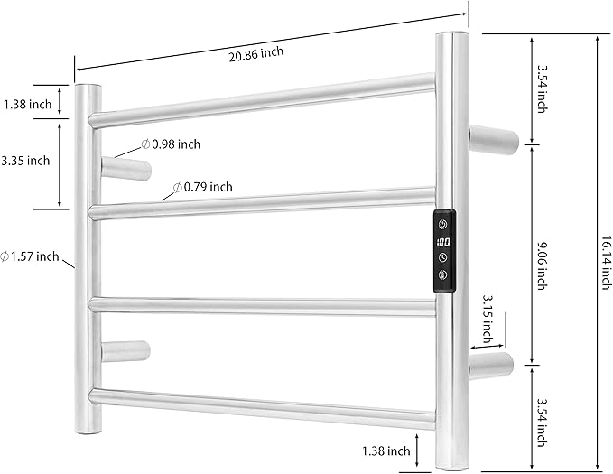 - [PREMIUM QUALITY WITH ELEGANT LOOK]: The bath towel warmer is made of durable 304 stainless steel, easy to clean and durable use. IP56 Waterproof standard and wall-mounted design maximizes your floor space.