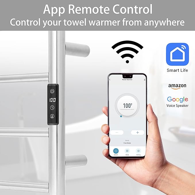 - [APP CONTROL & SMART SCHEDULING]: Turn the towel warmer on or off from anywhere in the world with your smartphone using the SmartLife app. Set the towel warmer to automatically turn on/off as needed.