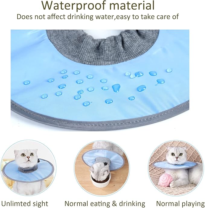 - Waterproof Design: Cat cone collar is made of water-resistant polyester, easy to wipe clean with mild soap or warm water, don't worry about getting wet while drinking and it can keep pet's wounds in a dry environment, which is good for wound recovery