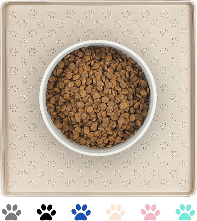 - [Quantity & Size] Contain 1 beige silicone pet food mat - 11.8" x 11.8" diameter. Available in 6 colors. The foldable square shape and size won't take up too much space. Suitable for small and medium cat dogs.