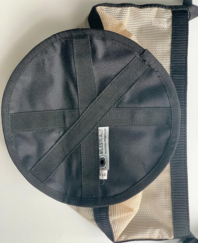 Majestic Ally Horse Feed Bag, Heavy Duty Nylon Mesh Grain Feed Bag, Adjustable Strap with Durable Snap and Elastic Straps, Comfort Neck Pad and Nose Pad- Large (Draft, Beige)
