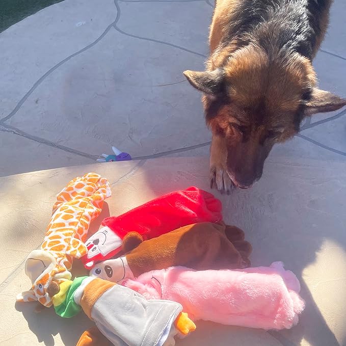 - SUPER VALUE &GREAT FUN: Includes 5 Stuffingless Animal Dog Toy. Each has an openning to place a plastic bottle inside for dogs who love chewing bottles or just some added fun.