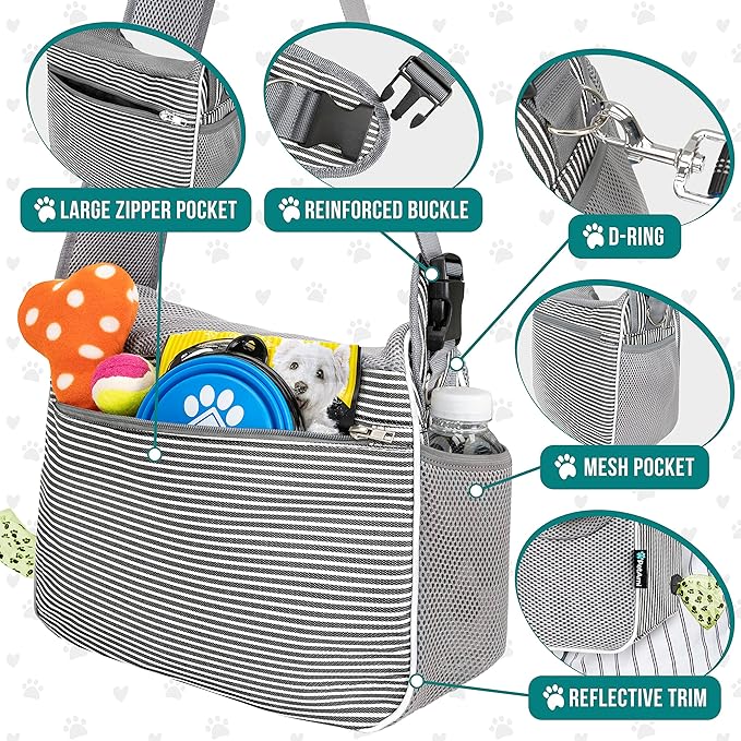 PetAmi Small Dog Sling Carrier, Soft-Sided Crossbody Puppy Carrying Purse Bag, Adjustable Sling Pet Pouch to Wear Medium Cat Travel, Dog Bag for Traveling, Poop Bag Dispenser, Max 10 lbs, Stripe Black