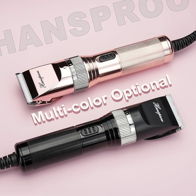 - Upgraded 36V High -Speed Strong Power Motor: Hansprou professional dog grooming clippers have strong power, no hair sticking, plug and use, no need to charge, to provide strong and stable power, you can use it to fast trim pet's hair and cut through smoothly