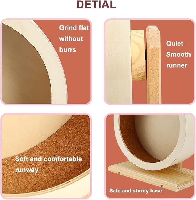 - 【Noiseless】 Designed by wooden with a very low noise level,and dual ball bearings, so can quiet keep it on spinning smoothly, even your little friends working out on the hamster exercise wheel in the night time, you still have a sweet sleep.