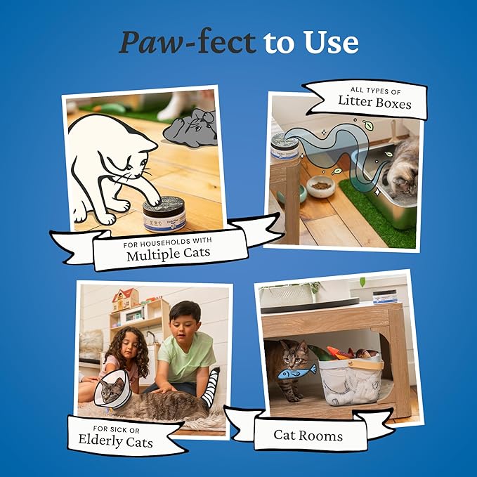 - Plant-Based Litter Box Deodorizer: Eliminate litter box odors with this fast-acting and long-lasting odor removing gel. There’s no perfume to cover up the smells. Just powerful ingredients that stop odors at the source.