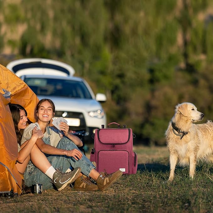Modoker Dog Travel Bag Backpack, Airline Approved Pet Accessories Organizer for Dog and Cat with Shoulder Strap, 2 Dog Food Storage Containers, 2 Collapsible Dog Bowls,1 Pet Mat, Rose Red