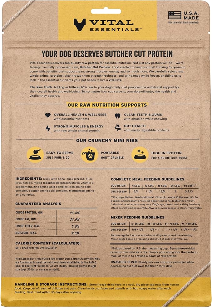 Vital Essentials Freeze-Dried Raw Duck Meal or Mixer Dog Food Crunchy Mini Nibs, 14 oz