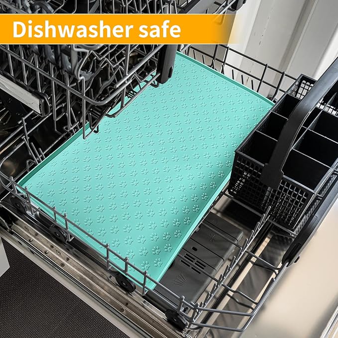 - [Protect the floor] The anti-overflow design on the edge and the material of the placemat can effectively prevent pets from soiling your floor during eating
