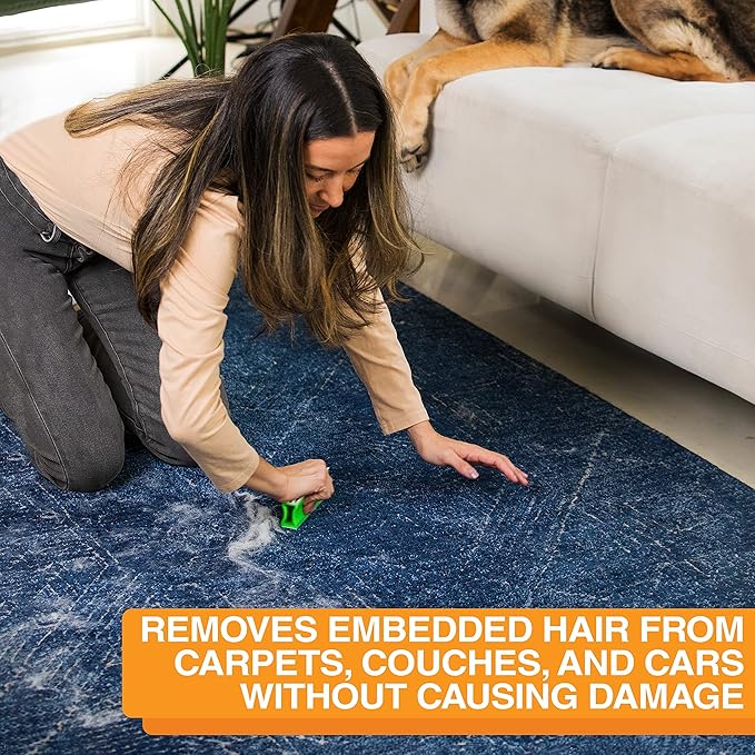 - GREAT FOR EMBEDDED HAIR - The top of the FurDozer X3 can get deep into carpets and couches to remove embedded hair that you didn’t even know was there. Not just for pet hair, the FurDozer will also help to collect and clean hair, lint, and other debris from your car, furniture, rugs, and more.