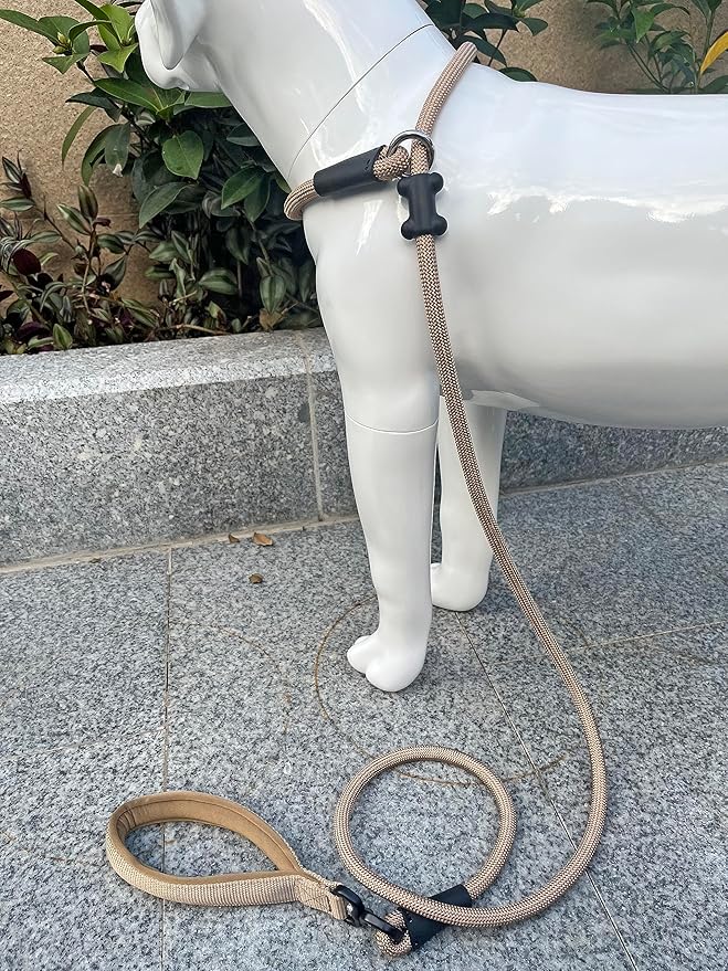 Slip Lead Dog Leash,Strong Nylon Rope Leash and Padded Handle,No Pull Outdoor Walking Training Lead for Small Medium Large Dogs(Light Military Tan, 1/2"×6ft)