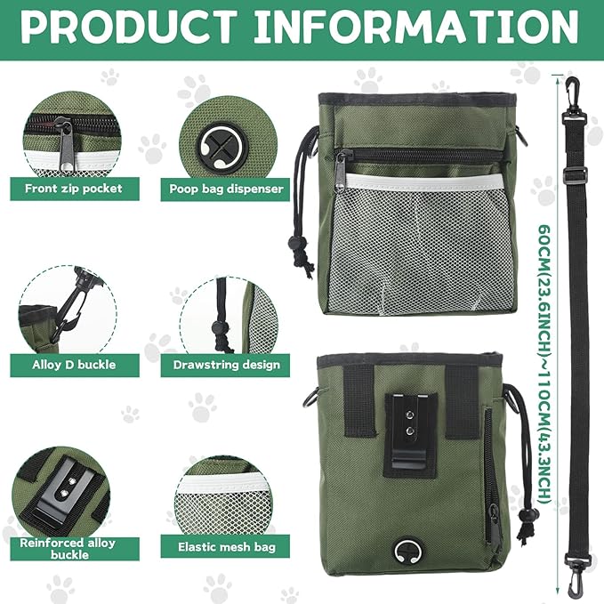 - Reliable to Store: the dog walking fanny pack is made of quality 600D oxford cloth and net cloth, credible and safe, not easy to fade, break or leak; With drawstring closure design, the bag can keep your pet treats safe, without worrying about leaking