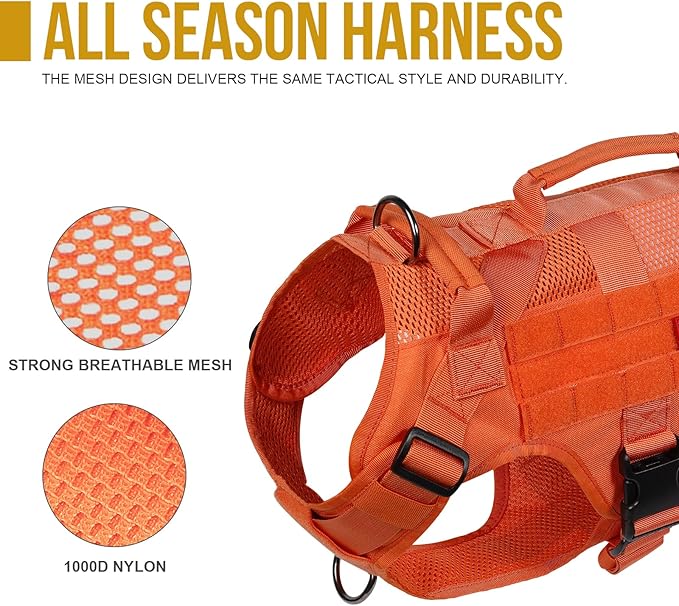 OneTigris Tactical Dog Harness for Small Dog, Mesh Design Service Dog Vest Breathable Military Dog Molle Vests with Handles, Harness for Walking Hiking Training